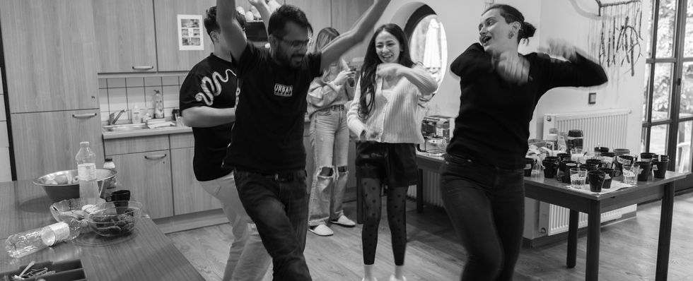 During our project, two participant-led sessions particularly resonated with us. The first, a rhythm workshop, was brilliantly orchestrated by Jordan, a man of many talents - a polyglot, musician, beatboxer, DJ, and someone deeply involved in personal aesthetics. His session wasn't just about tapping into basic beats; it became an immersive journey into the heart of music, crafted by our own hands and voices. Jordan's unique approach not only taught us rhythm but also connected us on a deeper, almost spiritual level with music.